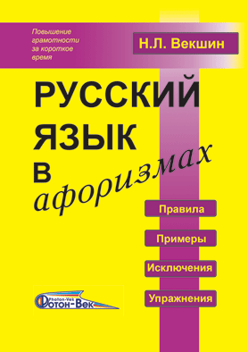 Векшин Н.Л. РУССКИЙ ЯЗЫК В АФОРИЗМАХ - учебное пособие для страшеклассников, студентов и всех, кто хочет реально научиться писать грамотно. Книга переиздавалась в разных вариантах уже несколько раз: МГУ - 2001, 2006, ЛОГОС ВОС - 2002, АСТ-пресс-школа - 2003, УРСС -2004, Фотон-век-2006, 2008